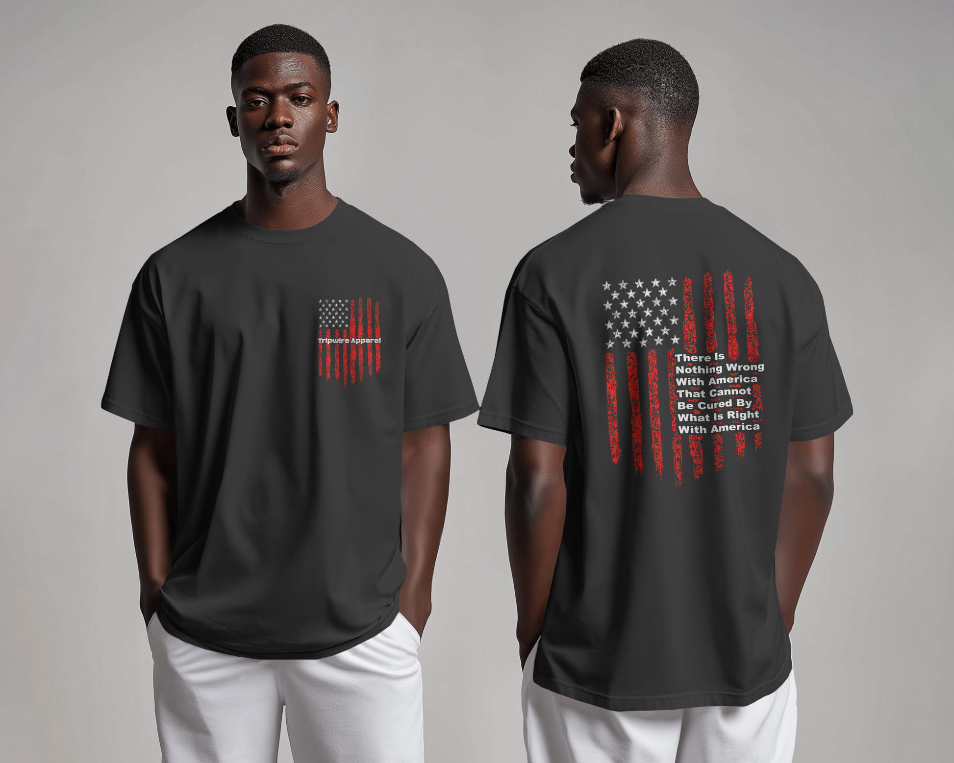 This bold and inspiring T-shirt showcases true patriotism with a powerful design. On the back, a large tattered American flag waves with rugged pride, symbolizing resilience and sacrifice. Across it, an inspirational quote is emblazoned in strong, Bold lettering—serving as a reminder of strength, unity, and unwavering spirit. The front keeps it subtle and respectful, featuring a small tattered flag over the breastplate, close to the heart, symbolizing honor and devotion. Perfect for those who stand tall for their country, this shirt blends grit, pride, and motivation in a timeless design.